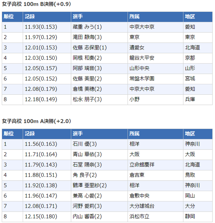 高中女子100米