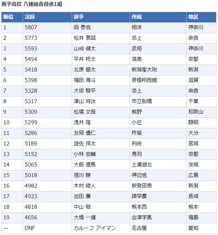 高中男子八项全能