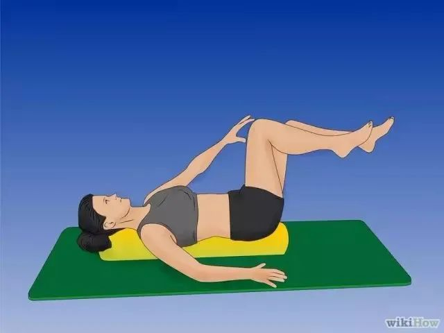 针对疲惫的脊椎肌肉使用泡沫轴。从脊椎底部开始往上滚,直到肩部附近。
