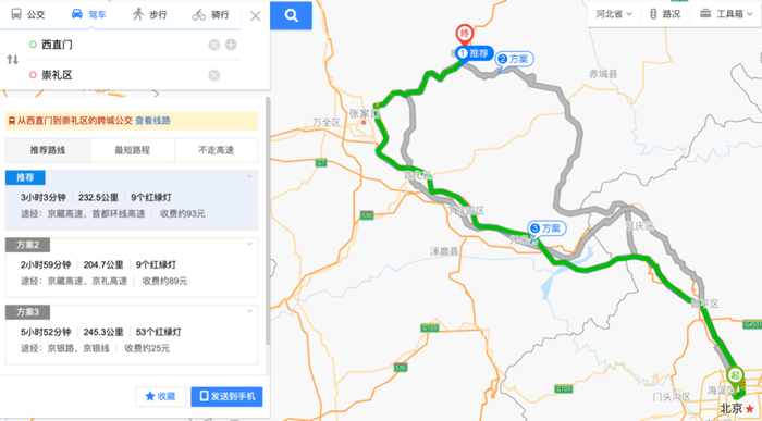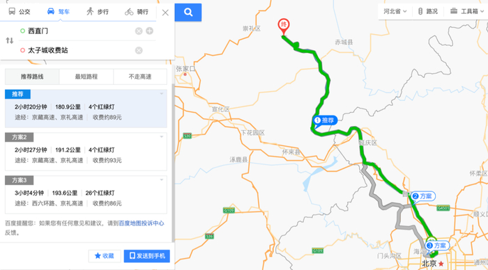 自驾出行有两条线路可以选择:京礼高速/京藏高速。