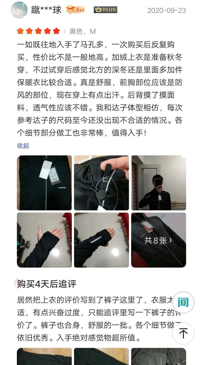 原因就是,加绒是加绒了,但面料不吸湿、不排汗,出汗之后,汗顺着裤子和腿之间往下滴,又凉又痒,体感极差。宁愿无货可卖,也不糊弄跑友,在经济利益面前,大掌柜守住了底线。