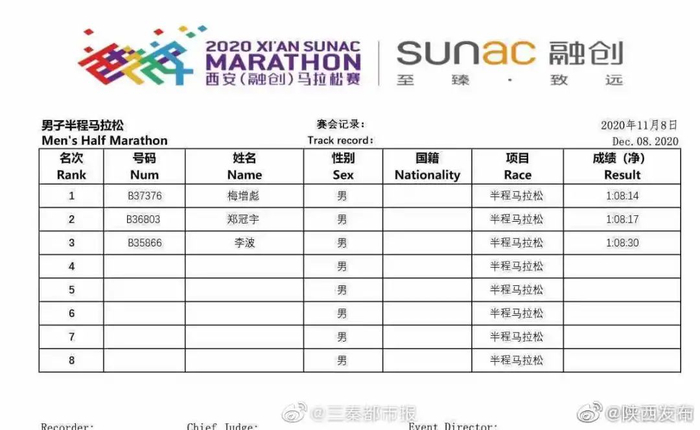 除了名单中的选手,参加本次比赛的大神还有2020太原马拉松冠军杨成祥、2020无锡马拉松季军尹顺金。