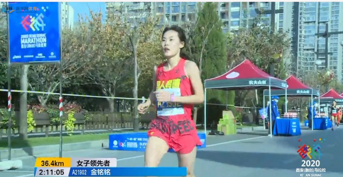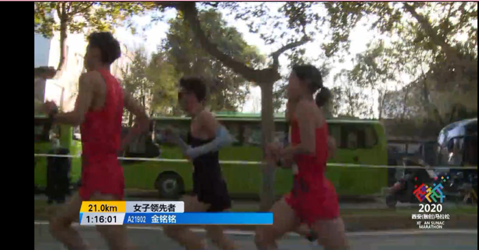 21公里时,金铭铭成为女子领先选手: