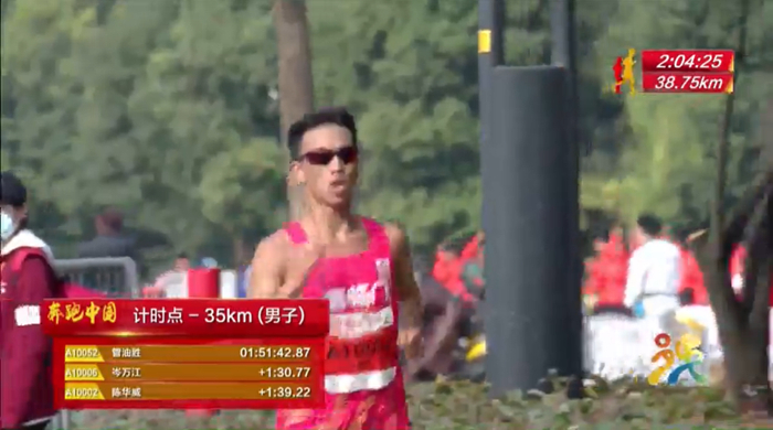 35公里用时1:51:42,大大拉开与岑万江、陈华威的距离,看来夺冠毫无悬念了: