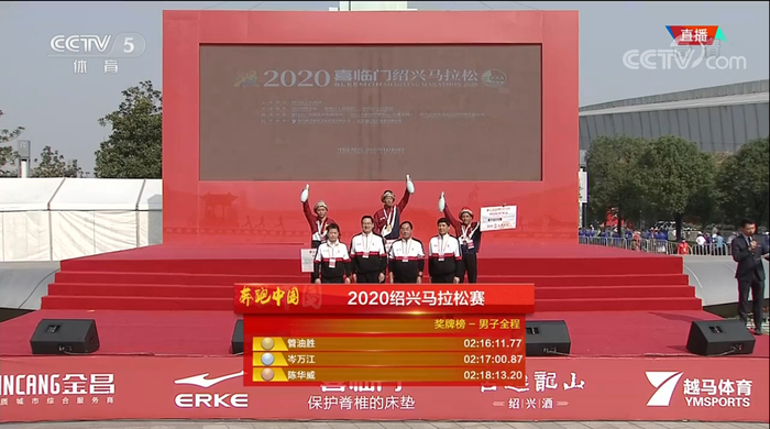 全马组:管油胜以2:16:11左右的成绩夺冠;岑万江第二,2:17:00;陈华威第三,2:18:13,钱鼎彬第四,2:18:35左右。