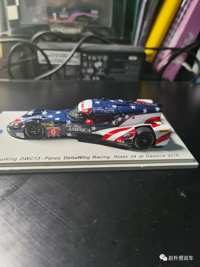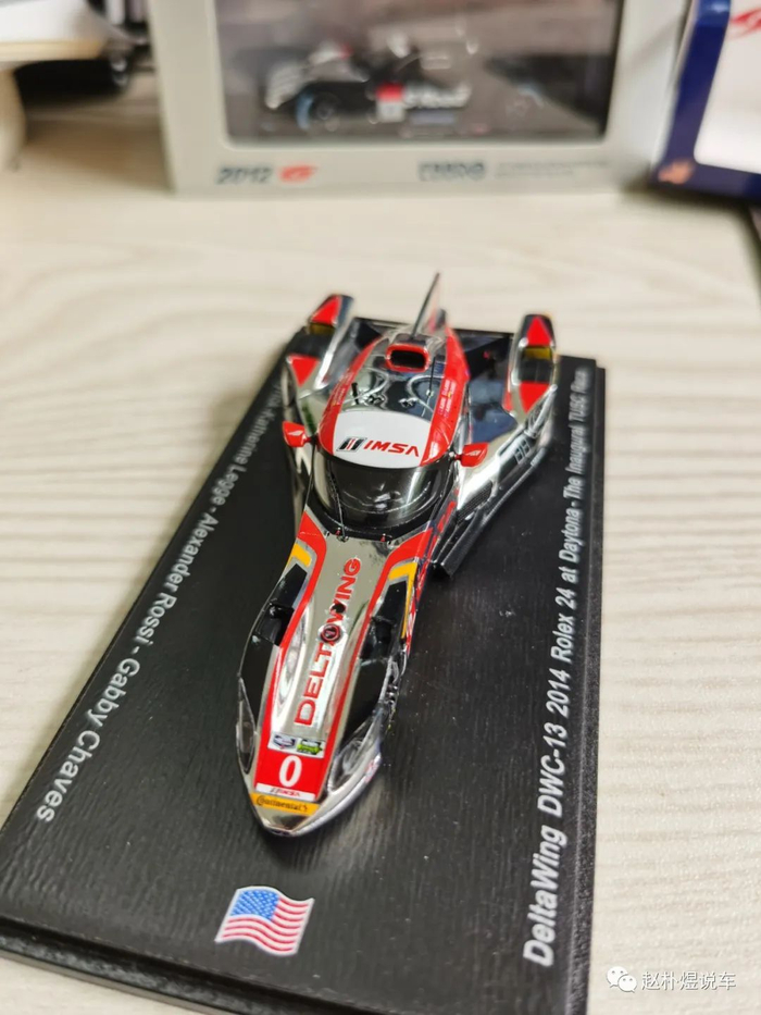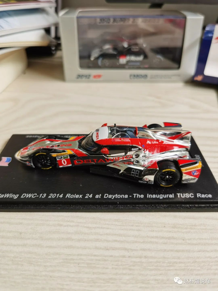 著名的模型制造商spark所做的这版2014年戴通纳24小时版本的DeltaWing DWC-13完美还原了比赛时候的DeltaWing DWC-13,可以看到车身的涂装和细节都还原了当时比赛的状态。