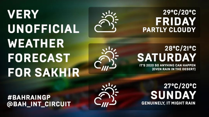 2020年巴林大奖赛原本举办日期是3月22日,由于疫情的影响推迟到了11月底,不过好在相对温度差不多,这对于各家车队来说是个好消息,意味着以往比赛的基础数据都还有效。