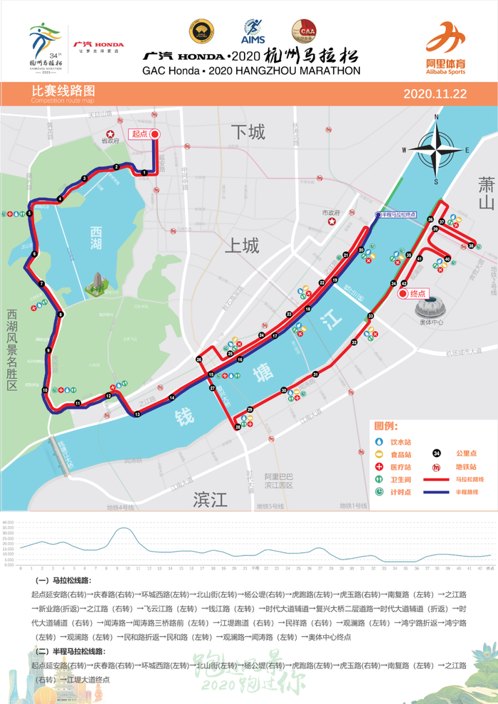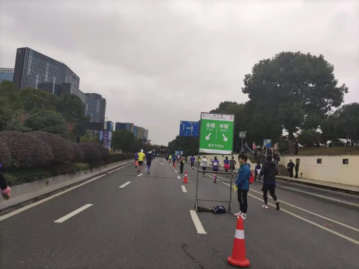 赛道路况良好,今年杭马赛道变更,没有感觉到有大的爬升,前段有坡,后段平缓。距离准确。
