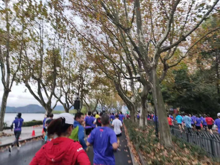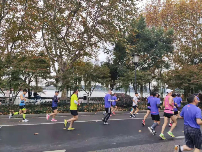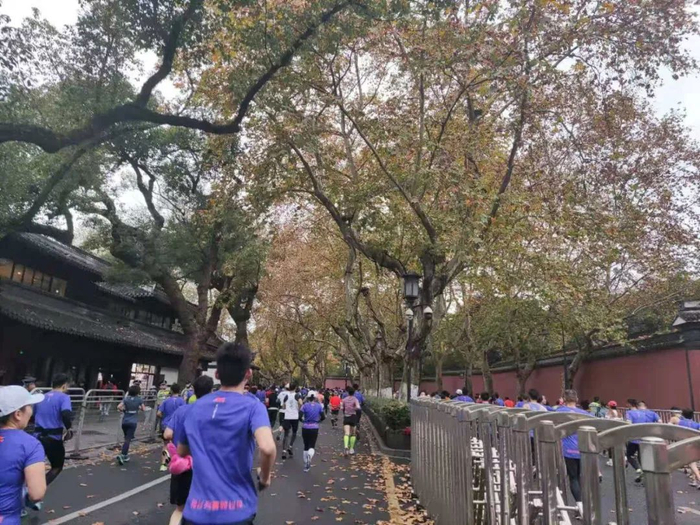 沿途风景很美,经过了主干道延安路,跑过西湖景区的断桥、北山路、杨公堤、虎跑路等,初冬深秋的景致一览无余,让人流连忘返。然后经过之江路跑向钱塘江时代,在江堤最美跑道上迎着江风领略钱塘风光。但是赛道太美,江风太大影响了我的成绩,哈哈哈。
