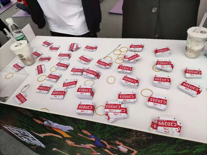 比赛现场,主持人一直强调把计时芯片在鞋带上固定好,其实计时芯片在号码簿上,很多小白跑者在现场很迷惑。