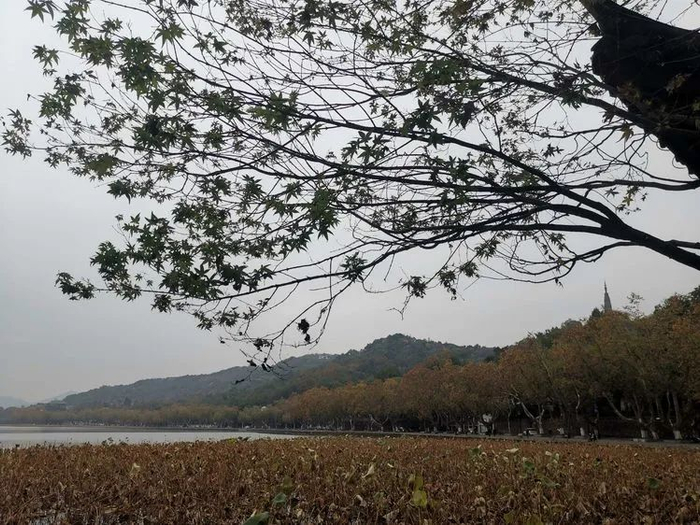 杭州的四季都很美,十一月末的杭州寒风萧瑟,落叶翩飞,清晨跑过西湖畔看着残荷,想起李商隐的诗句“秋阴不散霜飞晚,留得枯荷听雨声”,别有一番意境。