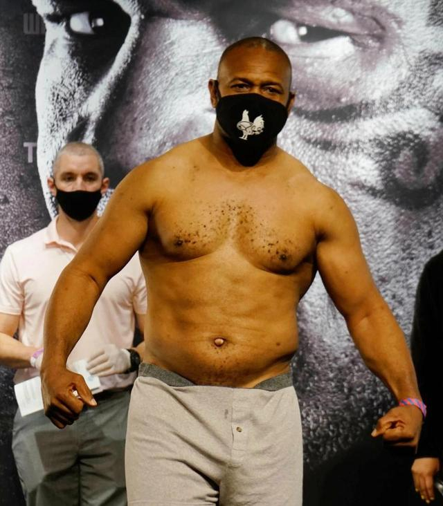 赛前称重显示泰森体重为220磅。泰森年仅20岁零4个月零22天击败特雷弗·伯比克,成为WBC重量级拳王,至今已经差不多34年了。在那场比赛中,泰森的体重达到了221磅。不出所料,小琼斯以210磅的赛前体重轻于泰森。51岁的他职业生涯的大部分时间都在轻重量级比赛中度过,此前他曾从中重量级起步。