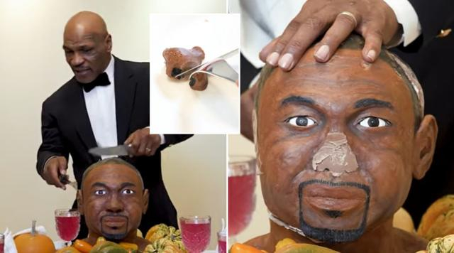 迈克-泰森在与小罗伊琼斯拳击世纪大战表演赛之前,泰森做了一个非常无礼,非常挑衅,非常引发争议的事情。那就是把感恩节蛋糕做成小罗伊琼斯的模样,然后用刀切开,和孩子们分享,最后干脆用来喂狗。