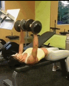 向上推起,两肘内收,夹肘的同时夹胸。哑铃向上的同时略向前偏,呈抛物线的运动轨迹。