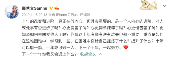 2019年,郑秀文曾在微博上PO出了自己的十年对比照:曾经的她骨瘦如柴,充满了戾气与锋芒,而如今她身材匀称,目光柔和,她说:十年的改变和进阶,真正在于內心。
