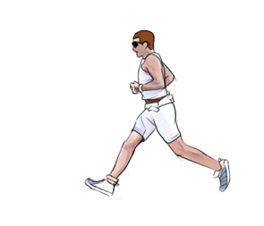 所谓后脚跟着地跑,就是在跑步中,首先着地的部位是脚后跟,然后过渡至前脚掌,通过足的内旋、蹬地,完成一个步态周期。