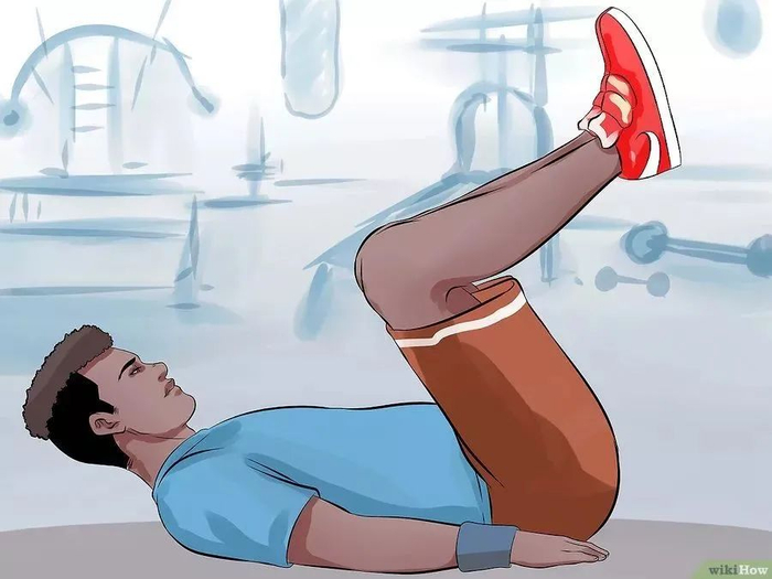 3.缓慢地将双腿放至地面。换口气重复抬起。可以再增加一点有氧运动或者腿部肌肉训练。