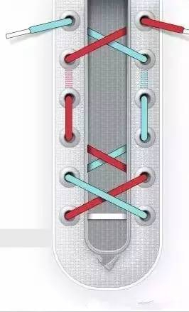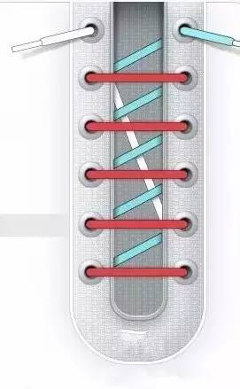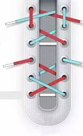 还有一种办法是将鞋带从鞋的中间部分开始交叉,从中间部分到头部鞋带绕行即可