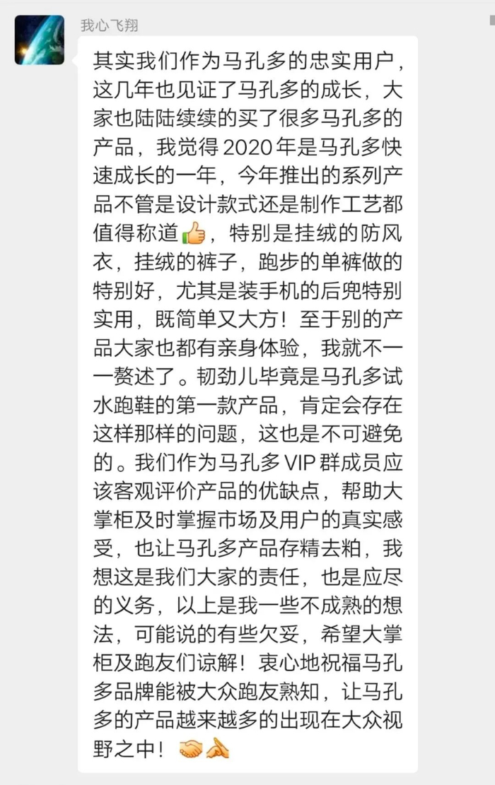 极少部分存在品质问题的跑鞋,我们采用了类似于汽车销售的“召回”策略,这也赢得了很多跑友的认可,他们是这么留言的——