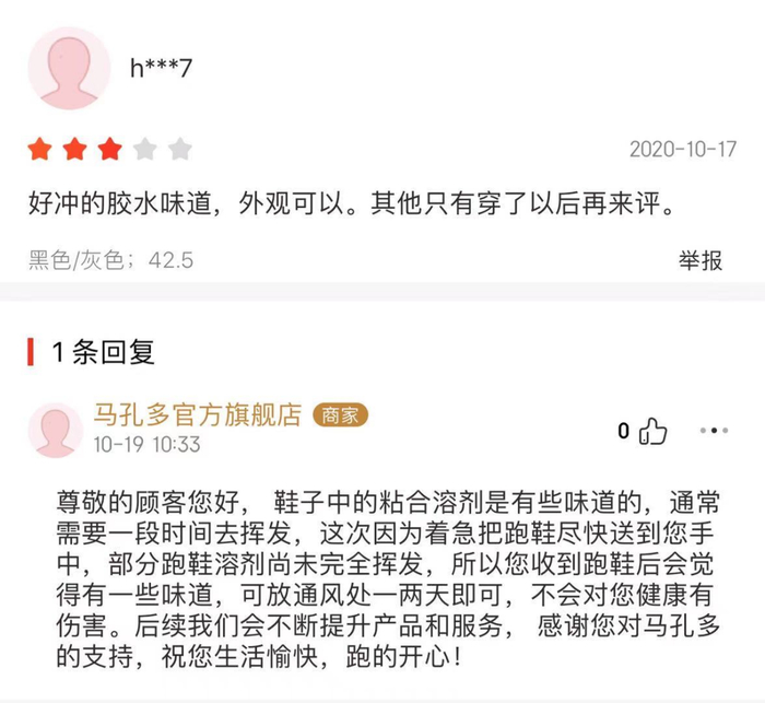 第二批跑鞋,已经全面解决了这个问题,可能部分跑鞋仍会略有气味,但气味极小,合作伙伴特意买了两万元一个的气味枪,用以现场检测;