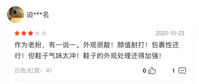 ▲10月发售时气味问题反映比较多,第二批发售的跑鞋,已经根本性地解决了这个问题。