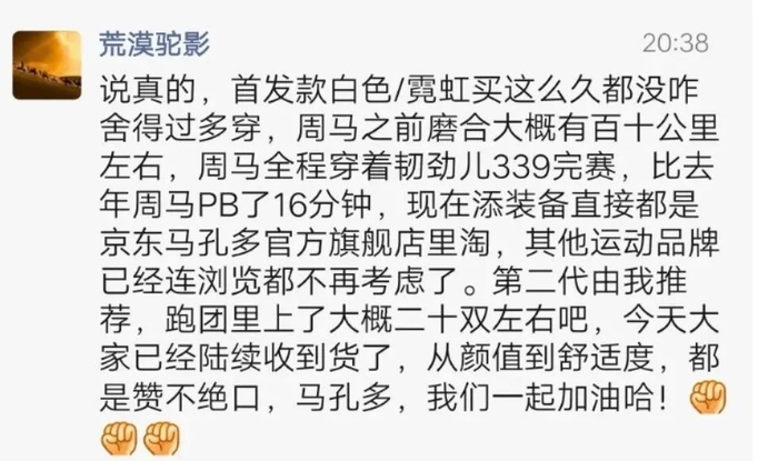作为一个小众品牌,作为一个小众品牌的首次跑鞋亮相,能够取得这样的成绩,除了用“谢天谢地谢人”来形容,也想不出其他词了。这里要感谢的“人”,不是外人、别人和旁人,而是近万名支持、信任和厚爱马孔多的跑友们。