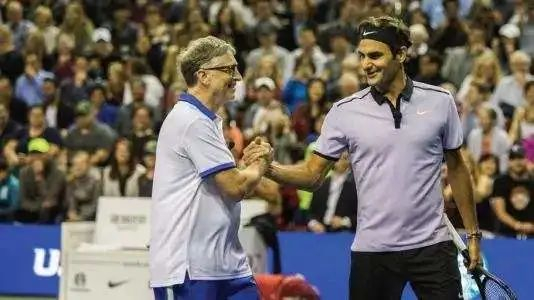与费德勒做搭档参加慈善网球赛,是比尔·盖茨特别愿意谈到的往事,看他在场上的表现,似乎还有些拘谨,但处理球的水平应该有3.0+.