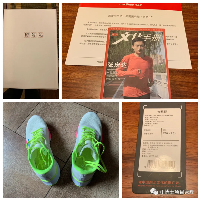 我被这双有文化的跑鞋感动了,立即拍了这组照片,并把标牌、文化手册和说明书收藏。