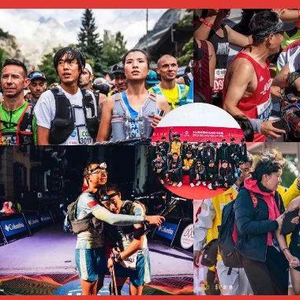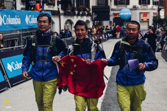 这是中国选手参加UTMB最难的一个组别PTL,三名选手冲线画面,PTL是一个2-3人组成的团队越野项目,没有固定的线路,赛道总长300km以上,这三名选手也是首个完赛的中国团队。