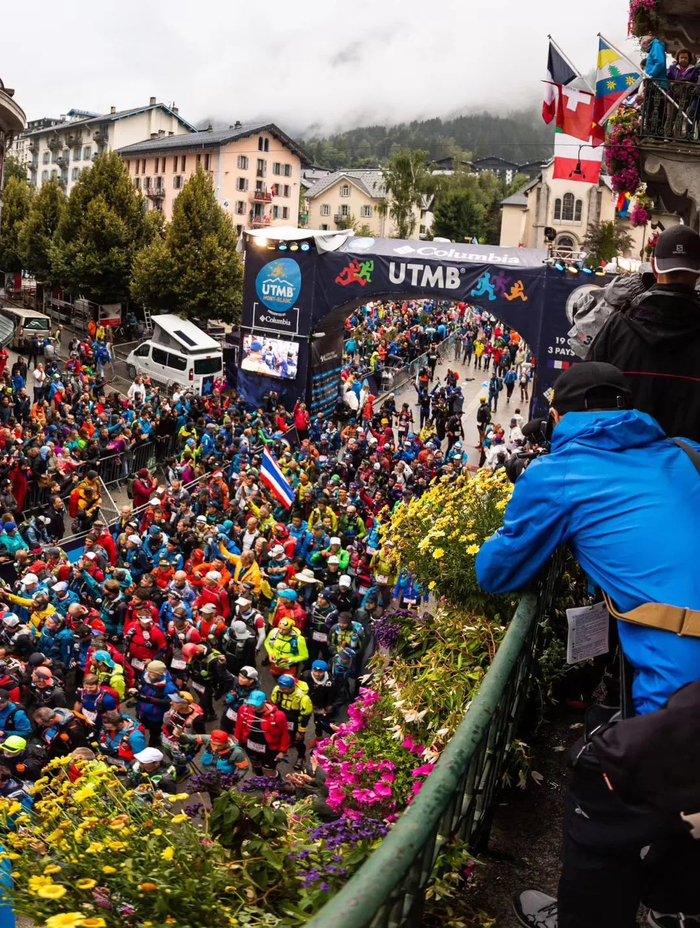 在UTMB,轲影像也被允许在起点处二楼阳台上拍摄珍贵的出发画面。