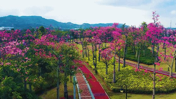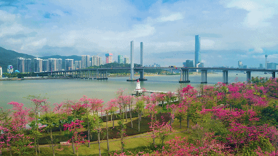 作为珠海新晋网红打卡点,全长13.6公里,景观带83.6万㎡,放眼望去草地郁郁葱葱、樱花木棉花海绚烂、河流流水淙淙,像是一幅立体的油画。来看看奖牌在木棉花海的衬托下有多美!