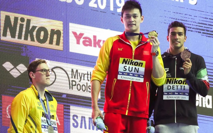 而众所周知之的是,在2019年韩国光州游泳世锦赛上,孙杨夺得200米自由泳金牌之后,老对手霍顿拒绝和孙杨合影。