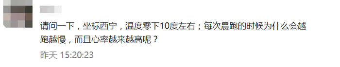 此外还有不少跑友反映,冬季温度已经很低了,为何一开跑心率就很高,即使速度降到很慢,心率也降不下来,这种情况要持续一二十分钟心率才会慢慢降下来。