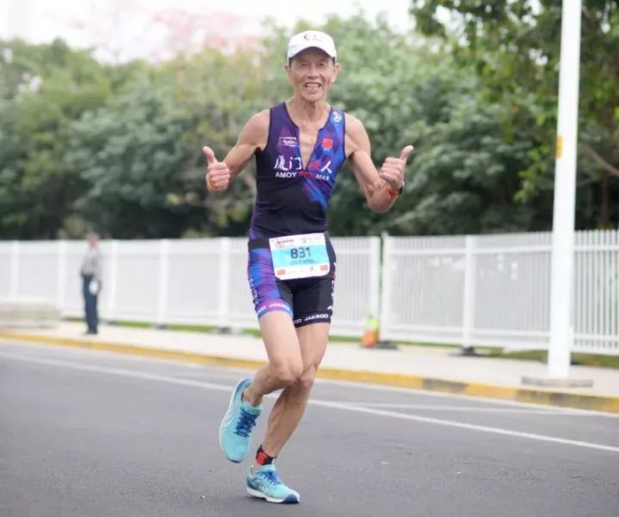 就在2017年的时候,林老参加了世界铁人三项赛厦门站比赛(比赛总距离为113公里,包括游泳1.9公里,骑车90公里,跑步21.1公里),最终用时用时6小时7分钟29秒完赛,并在65-69岁年龄组中获第三名,获得了南非举办的2018世界铁人三项赛(IRONMAN70.3)的参赛资格。