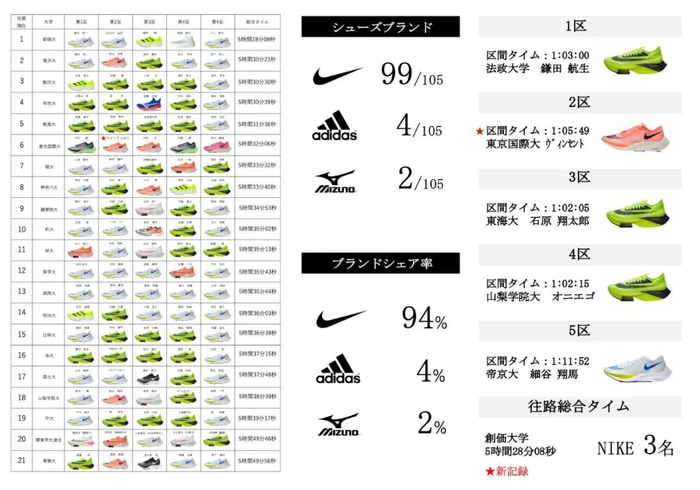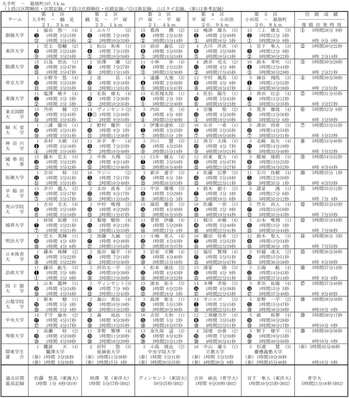 在这第二天的角逐中,青山学院大学队的总成绩最快(5小时25分33秒)。