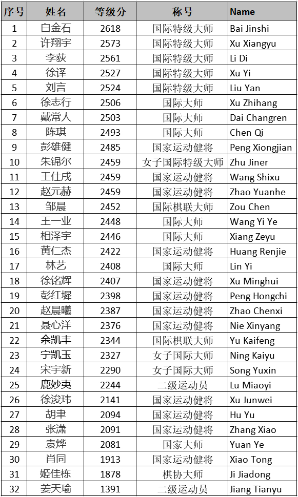 本次比赛共有来自全国各地的32名优秀棋手参加,将陆续为您介绍本次参赛的新秀运动员,请持续关注,让我们一起迎接超霸战的到来!