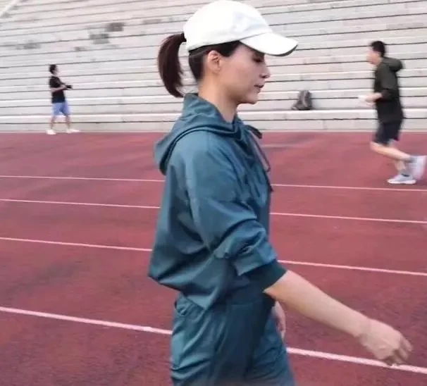 在标准的400米跑道上,46岁的董卿身穿墨绿色运动装,头戴白色棒球帽,脚穿白色跑鞋,跑起步来,跑起来很轻松,姿势也很到位,高马尾上下翻飞,青春飞扬,阳光、年轻有活力,几乎和身旁的学生并没有什么两样。