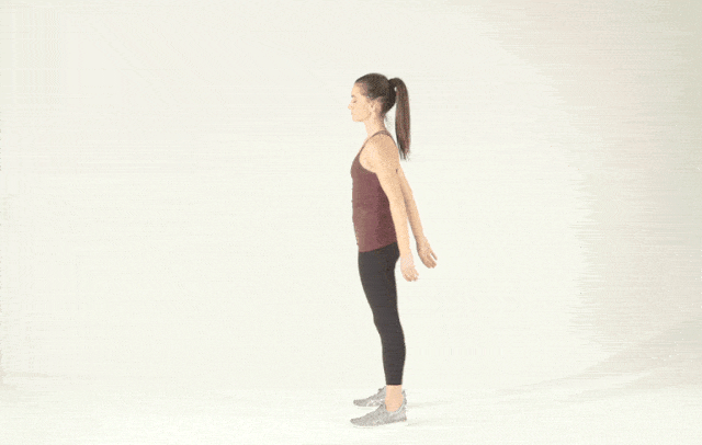 · 弯曲膝盖,臀部尽量向后推,直至大腿平行于地面