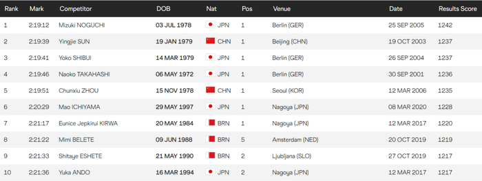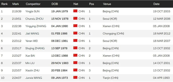 你可能会说,世界马拉松前15基本上是非洲选手,那么亚洲选手、中国选手又是怎样呢?