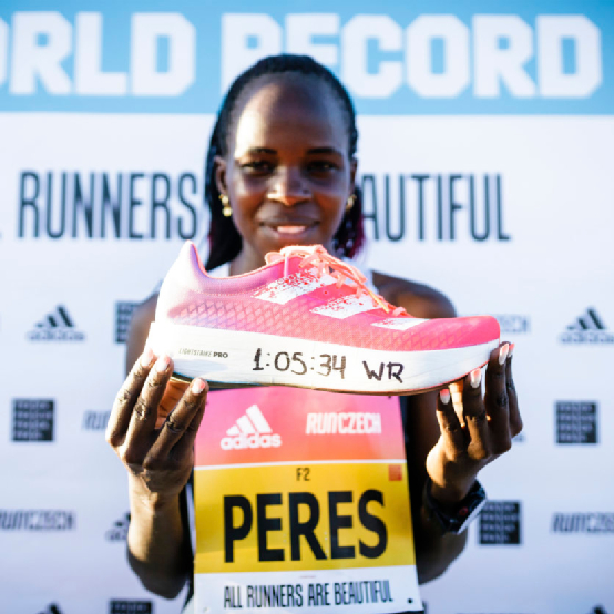 而肯尼亚选手Peres穿着这双鞋,以1小时05分35秒打破了纯女子半马世界纪录,在顶级竞速跑鞋的竞争中,阿迪达斯近两年有些被耐克压得喘不过气来,而借助adizero adios Pro在今年算是扳回一局。