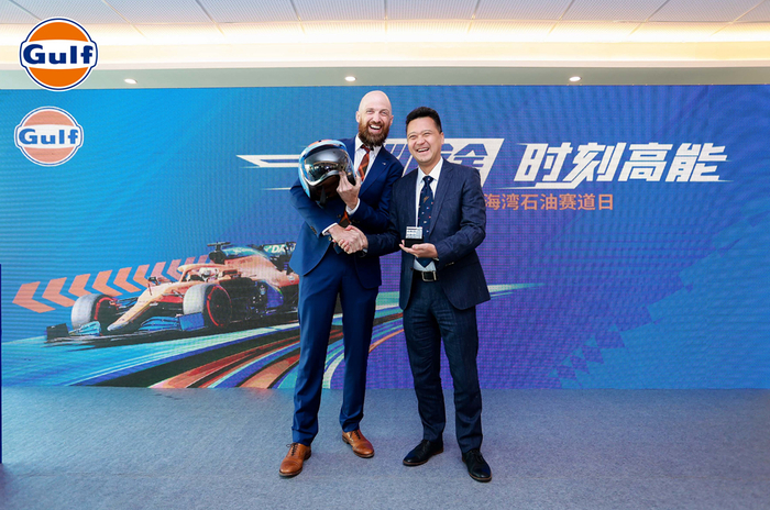 (GULF海湾石油中国总经理陈宇和迈凯伦汽车中国市场总监Abe Quigley)