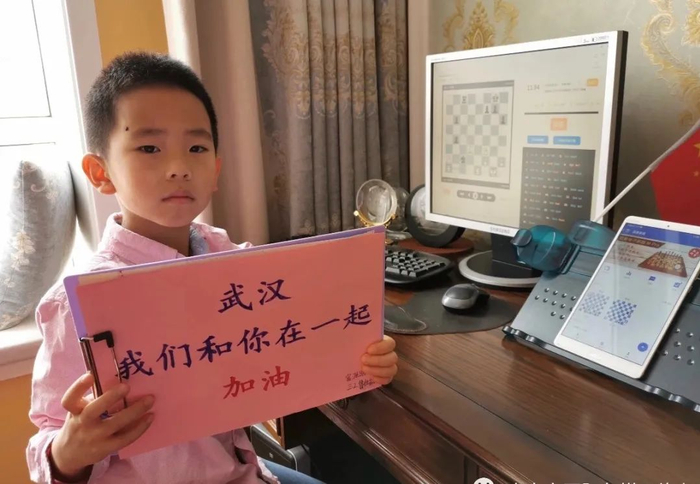 1月30日,大年初六,青伟国际象棋俱乐部开启了网赛大幕。2月2日,青岛、武汉棋手情牵一线,发起了的“青岛-武汉”网络国际象棋友谊赛。在5轮比赛中,青岛、武汉两地的40名棋手隔网传递友谊和爱心。赛后,湖北省国际象棋协会会长林卫国向青岛国象人表达了湖北国象人的感谢。在得到武汉小棋手的一致好评后,2月4日,双方又展开了第二次活动,并将参赛规模进一步扩大。