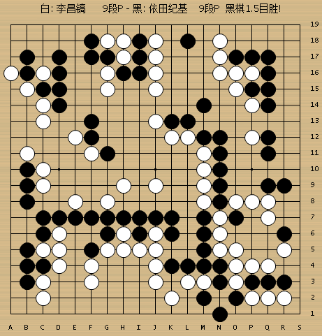 李昌镐也一直在顽强抵抗, 最终差距其实并不大,依田盘面8目,以1目半小胜。