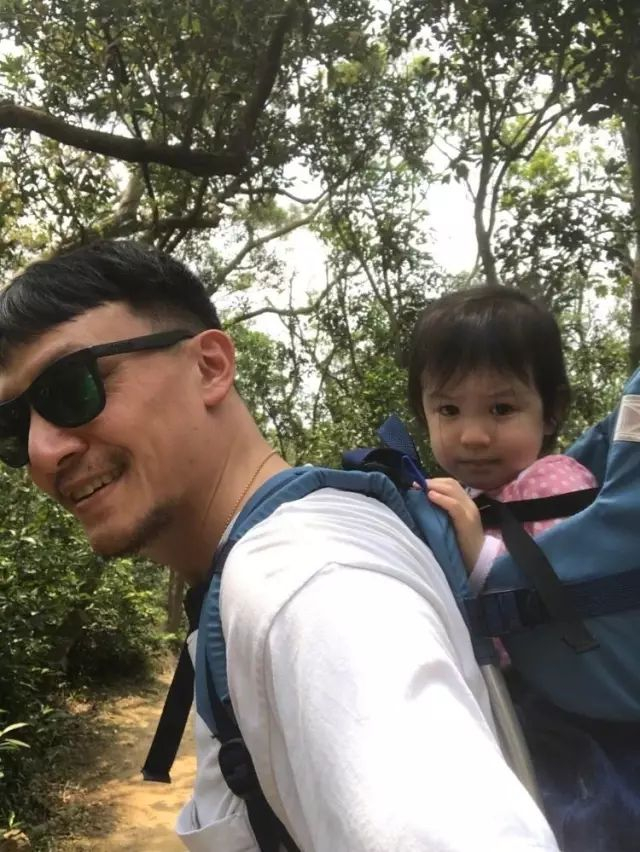 背着女儿和好友修杰楷一家一起爬山,就当是负重训练吧。