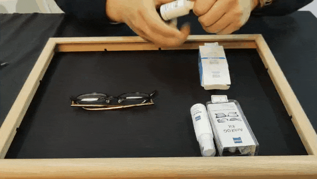 左右镜片各使用了国产防雾喷雾和进口喷雾。