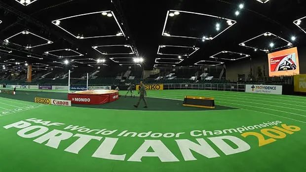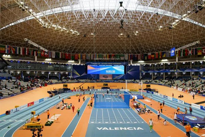 还有一点要说明,很多室内田径赛的举办场馆,并不一定是固定的田径馆。有一些综合性的体育馆,甚至会展中心,可以短时间内搭出室内田径赛场,往往跑道是架空的,跑上去蹬蹬蹬响,运动员对此种跑道,有人驾轻就熟甚至可以借助“弹力”,而有人无法适应。