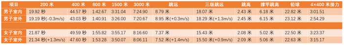 看看这些主要的项目——室内室外的世界纪录对比表,便多少能感知。