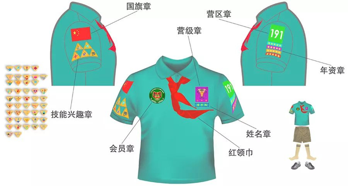 考取:会员章、营章、区章、年资章、国旗章、技能兴趣章等