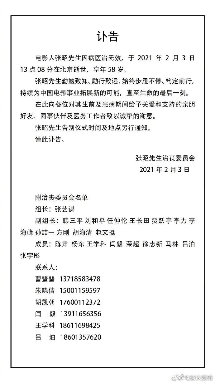 昨日还有一位知名电影人原乐视影业CEO张昭,因病医治无效去世,他前曾制作过《归来》《长城》《影》《小时代》系列电影。