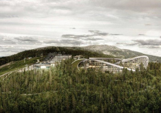 在Levi,丹麦著名的BIG建筑事务所设计了一座面积为47,000平方米的“考塔拉基滑雪村”(Koutalaki Ski Village)。未来,这个滑雪村将取代现在的Levi滑雪中心,并将之改建成世界一流的滑雪旅游胜地,为各种需求的滑雪者提供高质量住宿和休闲,